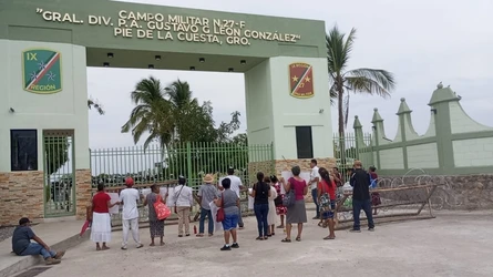 Unos 150 familiares de víctimas de la guerra sucia (1969-1979), que se vivió en Guerrero, protestaron afuera de las instalaciones del 6o Batallón de Ingenieros de Combate en Chilpancingo.