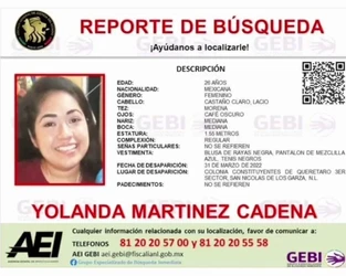 Participarán expertos extranjeros en búsqueda de Yolanda Martínez en NL